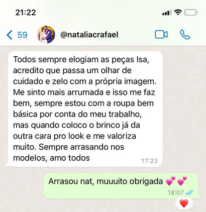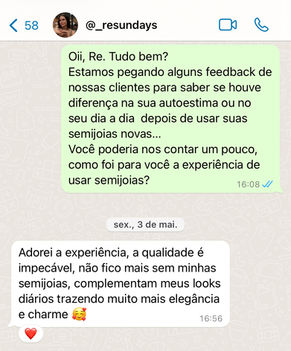 Segue alguns dos vários depoimentos reais das nossas lindas clientes, sobre nossas peças, se atente aos detalhes, afinal de contas você está adquirindo peças totalmente exclusivas e de alta qualidade nacional!